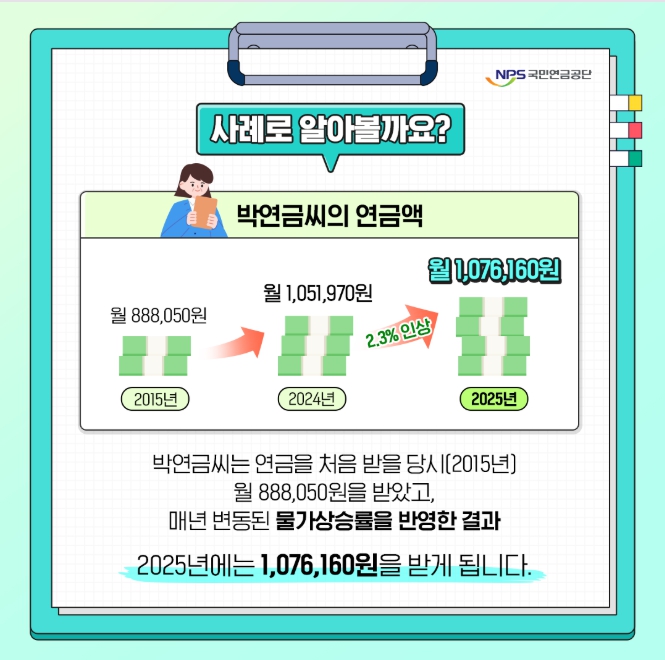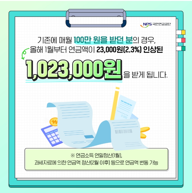 이는 물가 상승률을 반영한 결과이며, 실제 지급액은 개인의 가입 기간과 납부 금액에 따라 달라집니다.