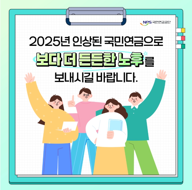 2025년 국민연금 인상률 적용과 함께 제도 개선은 단순히 수급액 증가에 그치지 않고, 국민 전체의 노후 생활 안정성을 강화하는 방향으로 나아가고 있습니다.